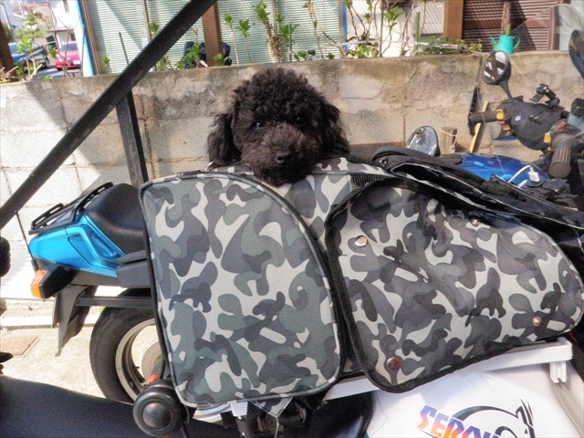 セローに乗ってきたモコちゃん(ライダーDogの洋服nice☆)