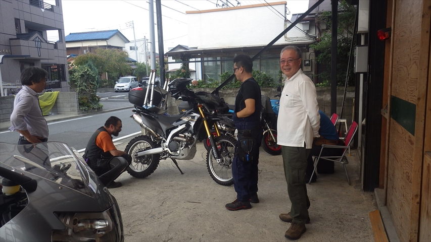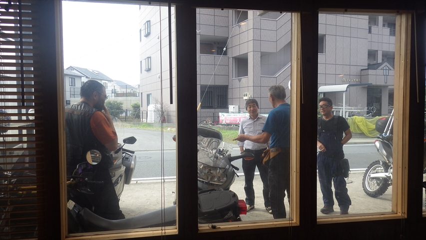 店内から駐車場にてライダー達はすっかり仲良しです。