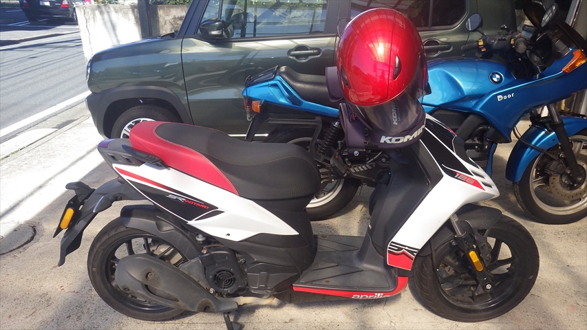 mocoちゃんオシャレしてアプリリアにタンデム。