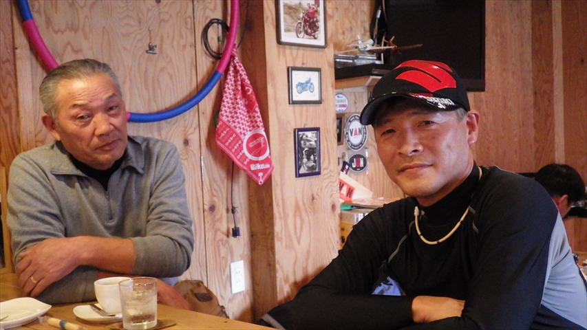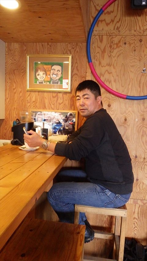 Sさんいつもの自転車で・・・カウンターでトーク絶好調。