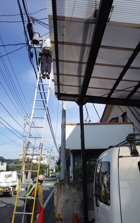 NTT業者が光回線屋外工事をしていました。