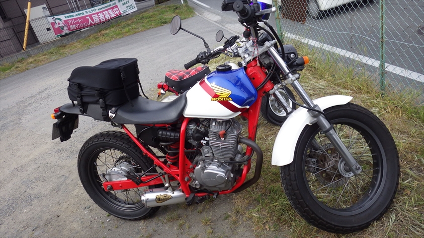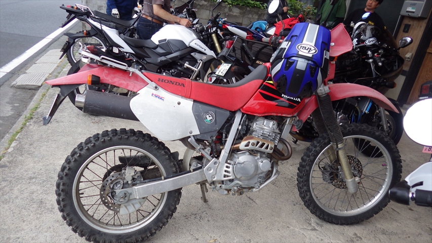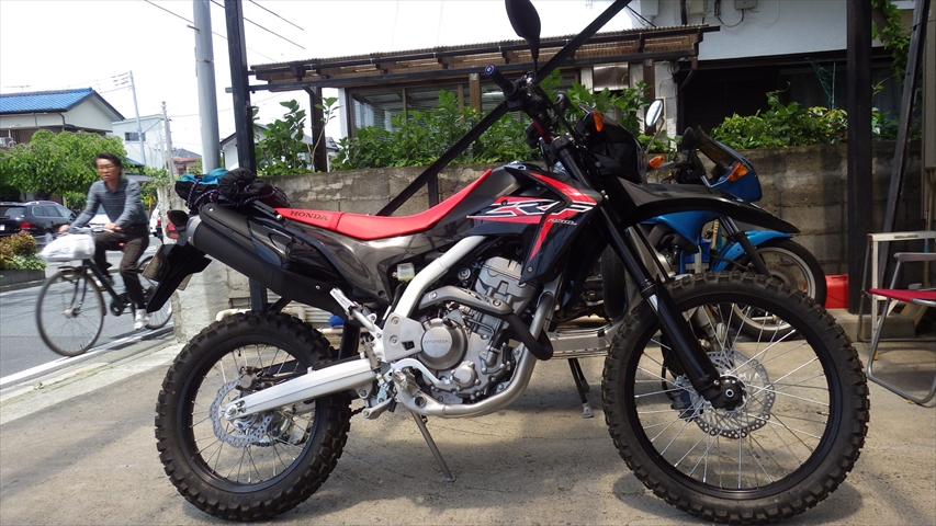 Fさん庭木の手入れ後XR250で入扉です。