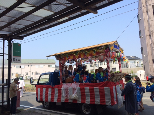 朝オープン前に子供の山車が通過~