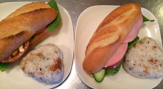 フランスパンサンドと梅干のおにぎり☆