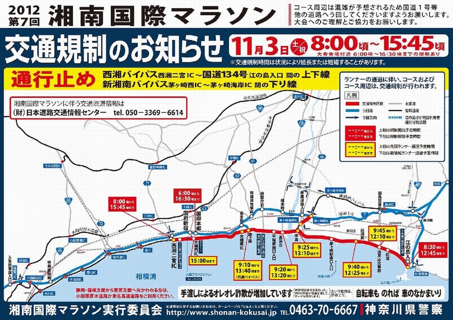 2012/11/02 | News明日11/3(土)文化の日は『湘南国際マラソン』の日です。