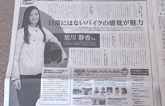 新聞にもバイクメーカー協賛で、