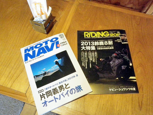朝届いたMOTONAVI10月号と常連さんでRIDING SPORTに