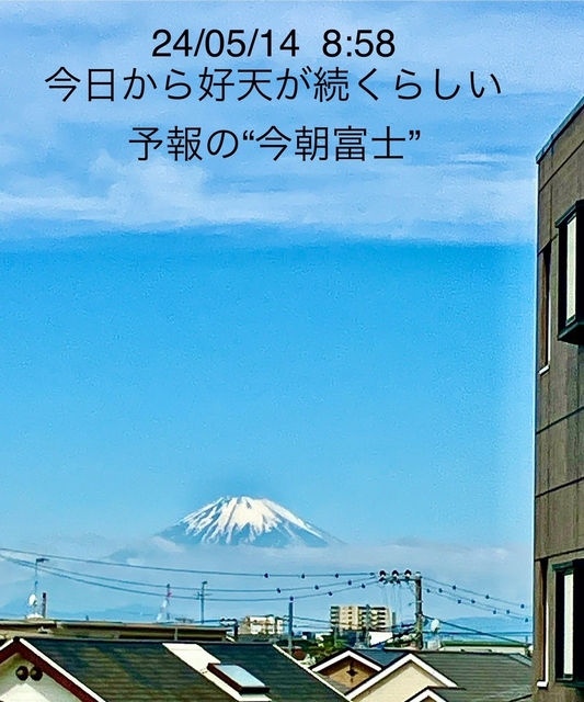 くっきり富士山の頭が出てる!暑くなるかな?