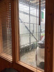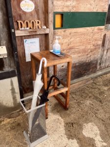 Doorの前も消毒台も雨が吹きかけてます☆