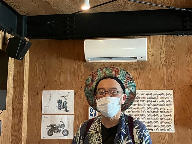 店内に戻るとハットの被り方が変わる(爆笑)