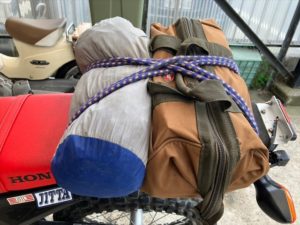 カブで珍しくリュックを背負ってる!