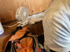 あまりの暑さに携帯扇風機持参にママ大笑い☆