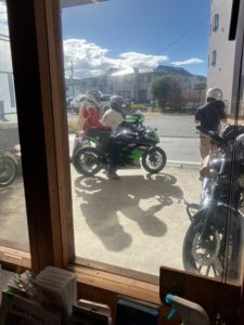 本日1番乗りでマスターと語る常連ライダー☆