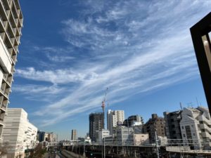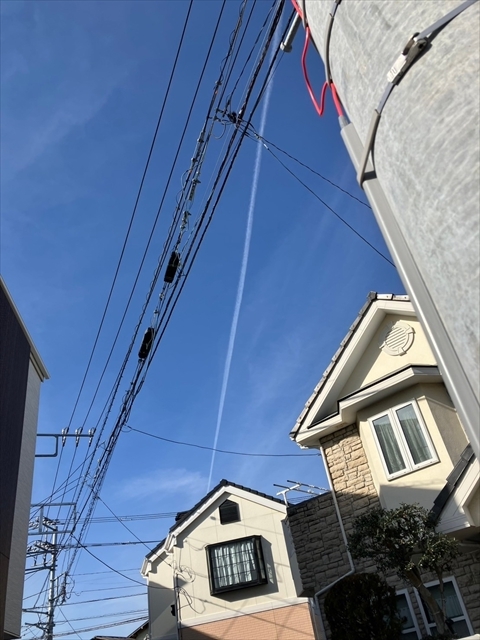 今朝のママの買い物時に飛行機雲を発見☆