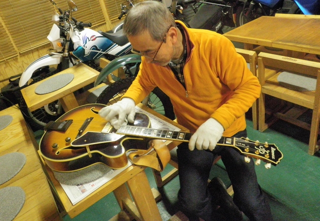 楽器もオートバイと同じように可愛がっているマスターです。