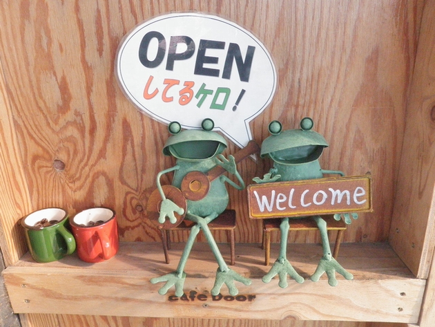 cafe Doorのドア横のカエルがリニューアルになりました!