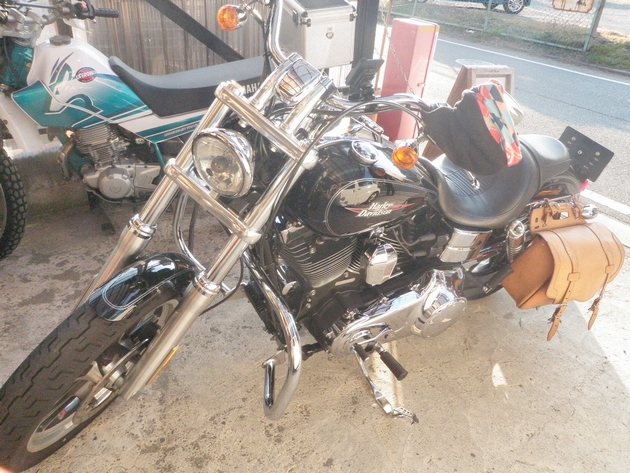 yumikoさんお客様達と専門的な話を…すっかりBIKE乗りですね(ハーレー)