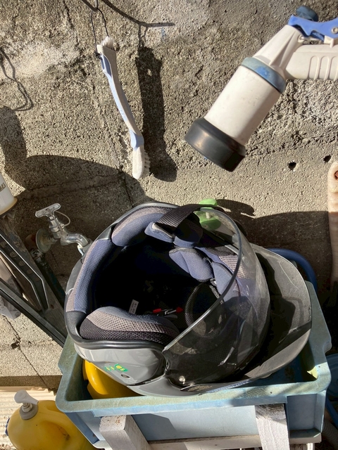ヘルメット!シャワー浴びたいのかな(爆笑)