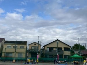Door開店で早々帰宅(緑テントが我が自治会)