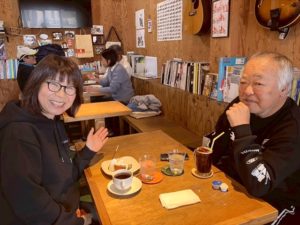 話す姿を撮ったつもりが珈琲飲んでる姿に(汗)