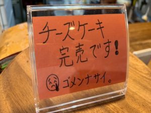 チーズケーキ完売ごめんね!また明日焼く!