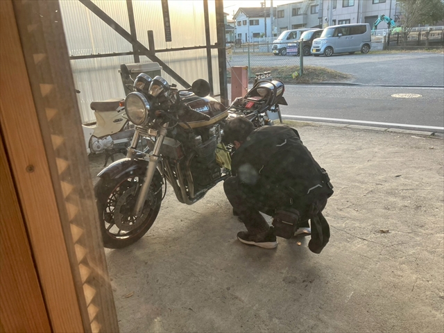 ん!寒いのに駐車場でメンテが始まった☆