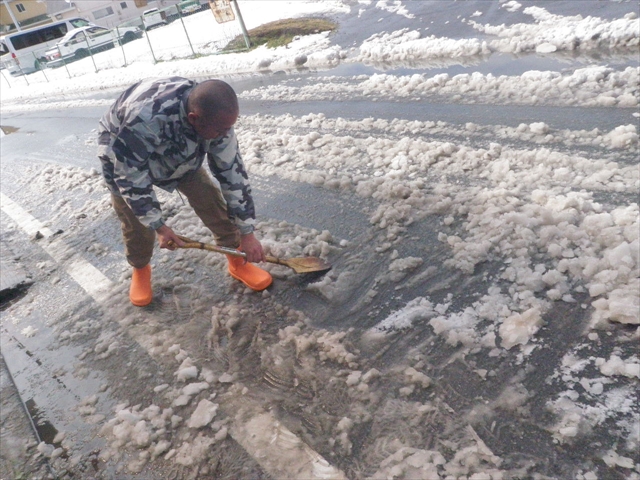 お隣のマー君が早々雪かきをしていた。