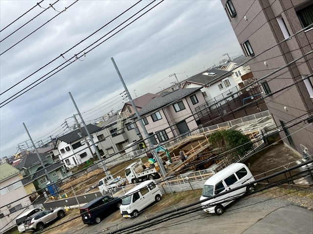 広い駐車場奥に家が6軒建つ予定(工事始動!)