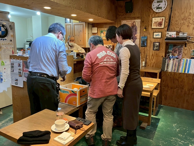 店内ではマスターがカワサキ乗りに教え乞う☆