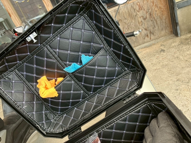 トップケースの内装がオシャレですねぇ~☆