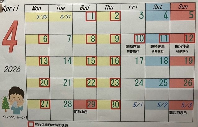 2026/03/03 | News★4月は研修旅あり4/8~13まで連休です★