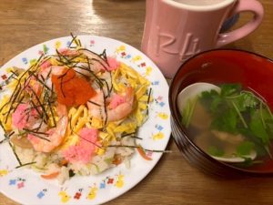 今夜の夕飯はちらし寿司と蛤の潮汁(美味☆)